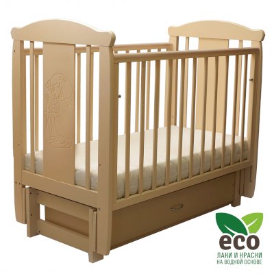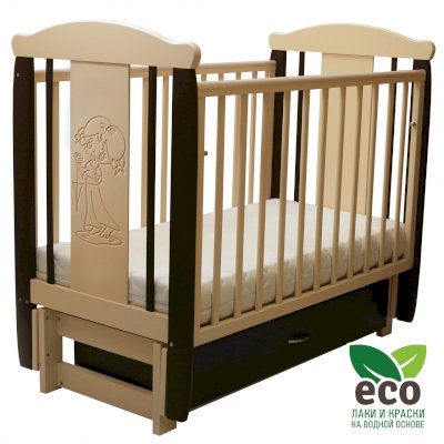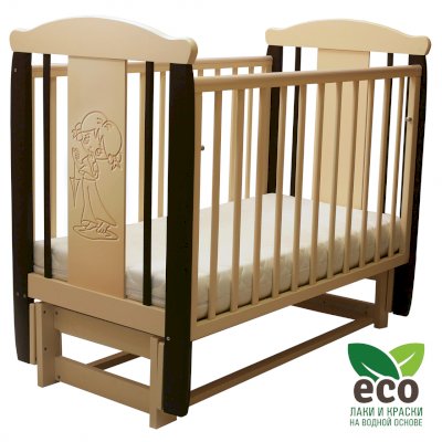 Кроватка "Соня 05" имеет механизм качания продольный маятник. Механизм качания фиксируется. Возможен вариант кровати с ящиком.