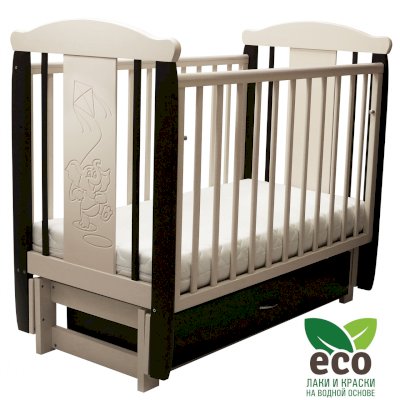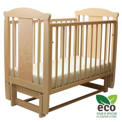Кроватка "Соня 05" имеет механизм качания продольный маятник. Механизм качания фиксируется. Возможен вариант кровати с ящиком.