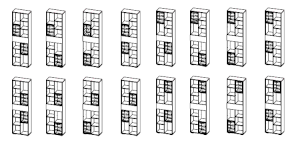 - 8 вариантов исполнения навесной полки ПН-001 и 16 вариантов исполнения стеллажа СЖ-001