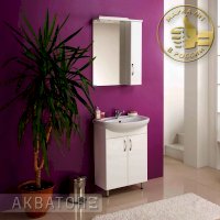 Раковина, несмотря на свой миниатюрный размер, имеет удобную форму. Для хранения вещей предусмотрены вместительные полки в тумбе под раковиной, а мелкие ванные принадлежности удобно хранить в зеркальном шкафу, который вдобавок оснащен светильником и выключателем с розеткой для дополнительного удобства. Непосредственно зеркальное покрытие имеет защитный влагостойкий слой, и не будет запотевать. Для своего удобства вы можете выбрать зеркало с левым или правым шкафом.
