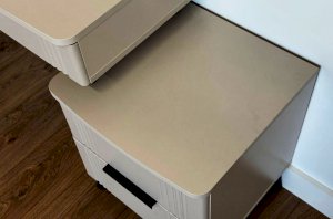Представляем вам элегантный и функциональный туалетный столик «Катрин»! Этот предмет мебели станет стильным дополнением к вашей спальне и предоставит удобное место для хранения вещей, а также может использоваться как письменный стол.