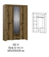 Трехстворчатый шкаф с зеркалом Квадро-16