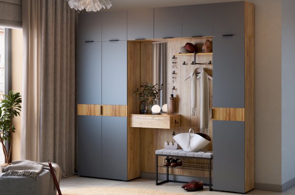 Крючки предоставляют удобное место для хранения сумок или аксессуаров. Выкатной ящик служит дополнительным пространством для хранения мелочей, таких как ключи, кошелек, косметика или другие небольшие предметы.